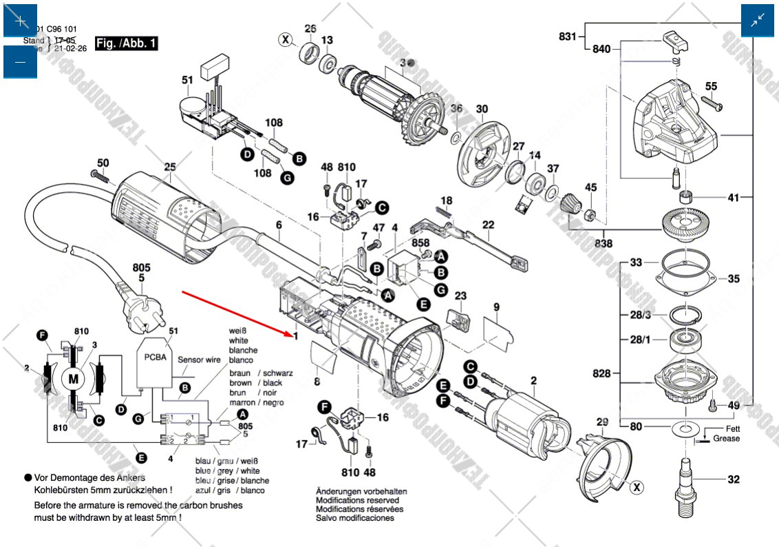 Корпус мотора для GWS 880, GWS 9-115, GWS 9-115 S, GWS 9-125, GWS 9-125 S, GWS 900-100, GWS 900-100 S, GWS 900-125, GWS 900-125 S