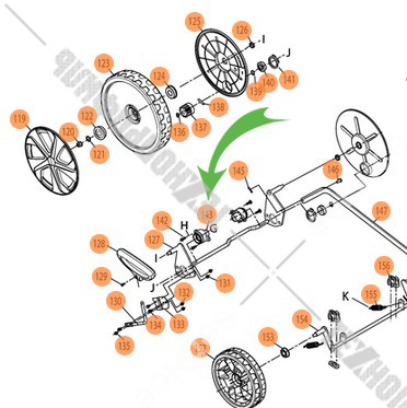 Крепление заднего колеса к газонокосилке ELM4621 MAKITA (YA00001120)